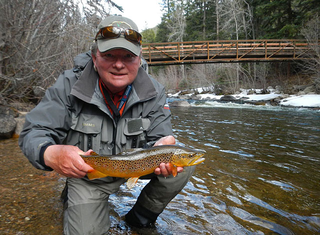We got a nice break from recent winter storms and had a beautiful day up in the Taylor Canyon yesterday. Mac and his son Matt spent the day at Taylor River Lodge catching rainbows, cutbows, cutthroat, and brown trout. The fish made us work, but the guys did really well.